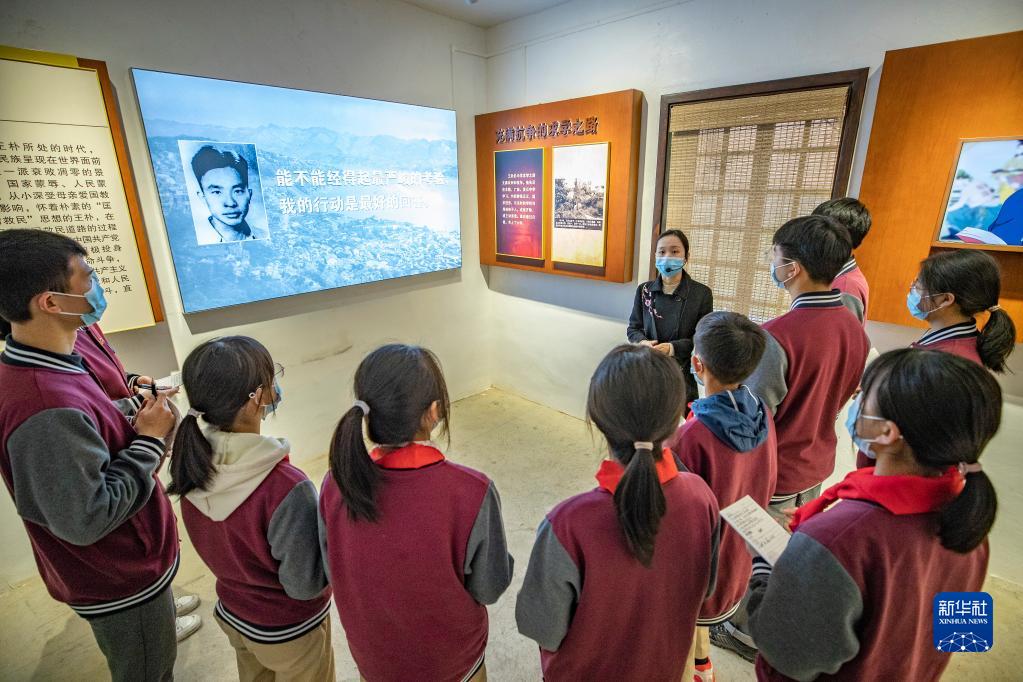 4月2日,在重庆市南岸区王朴故居,讲解员为重庆市广益中学的学生代表讲解王朴烈士事迹。