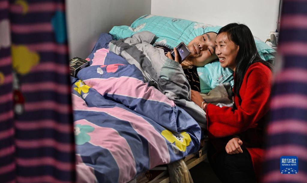 3月30日,杨玲和哥哥杨大福一起浏览手机上的新闻。