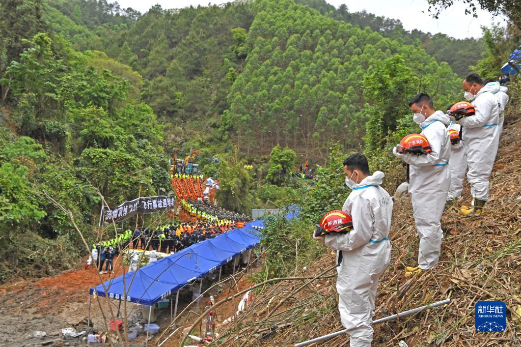 当日下午,“3·21”东航MU5735航空器飞行事故遇难者集体哀悼活动在事发地搜救现场举行,对遇难者表示哀悼。