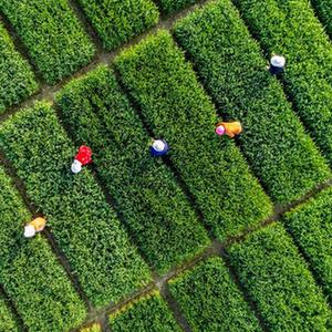 3月30日,在安徽省合肥市庐江县白湖镇省级现代农业示范区育种基地,农民在小麦育种田清除杂草。