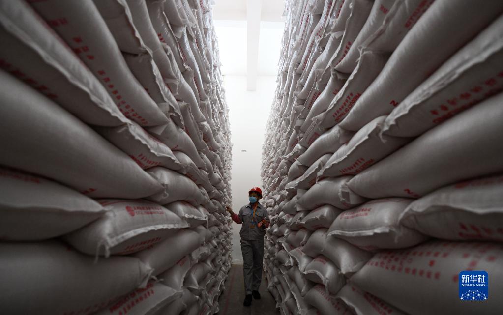 4月2日,工作人员在海南海口粮油储备有限公司粮食储备库检查储备粮。