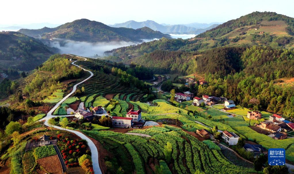 近日,秦巴山区的陕西省安康市汉阴县漩涡镇1.2万亩凤堰古梯田在油菜花的映衬下,满目锦绣。