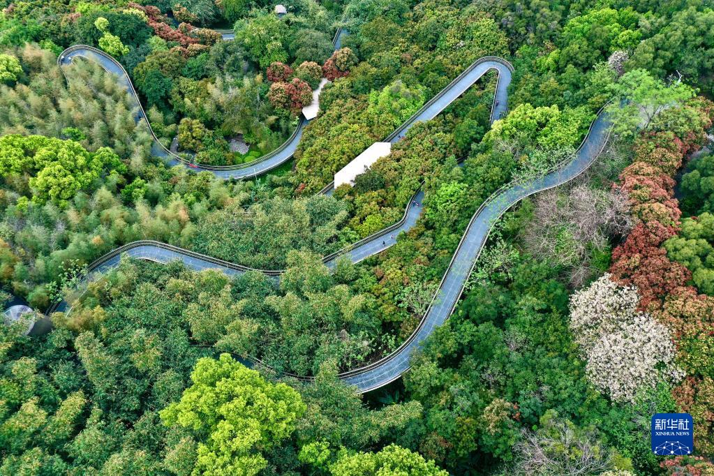这是4月2日拍摄的福州金牛山公园森林中的“福道”(无人机照片)。