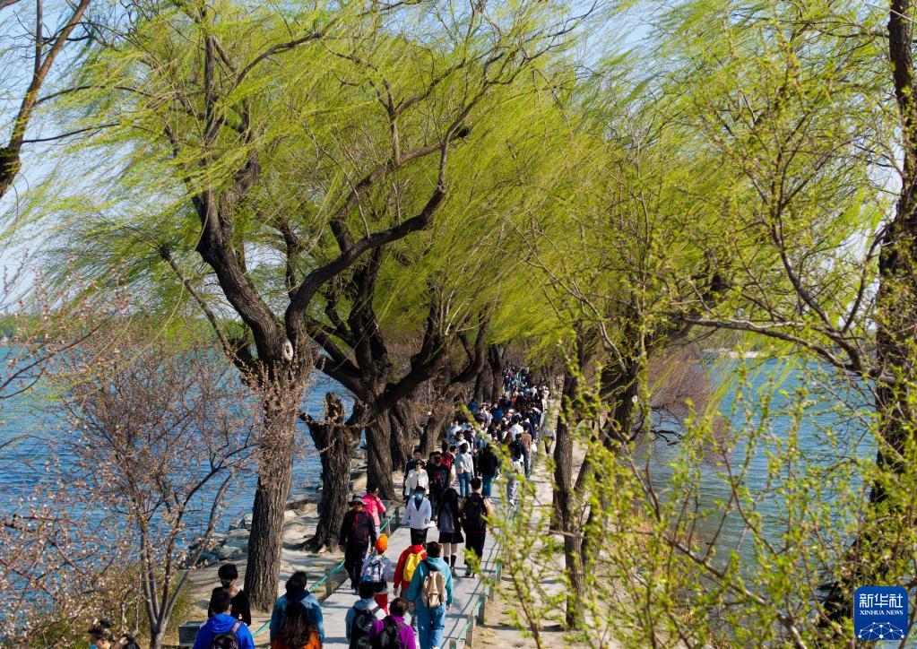 清明临近,北京颐和园春花灿烂,细柳拂风,游人如织。