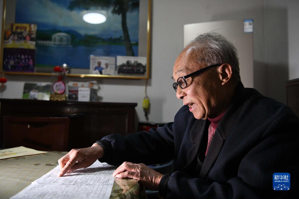 4月3日,在合肥市邮电新村小区内,83岁的吴荣坤在家中查阅遗体捐献志愿者的信息。新华社记者 张端 摄
