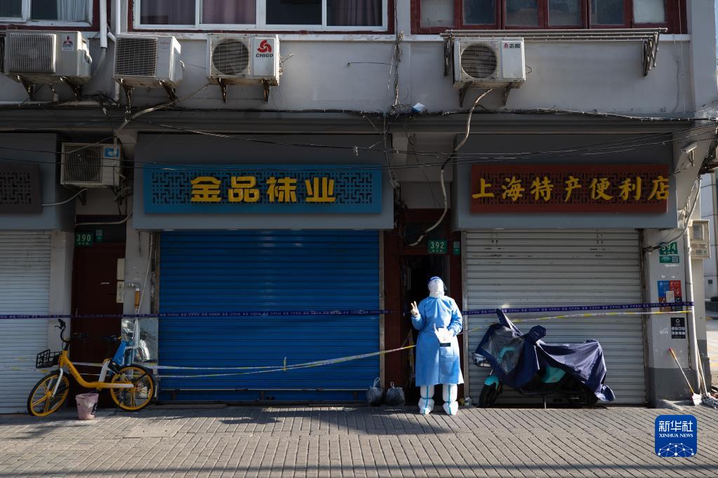 广福居委会干部俞静芳上楼发放抗原检测试剂,指导居民做完检测后面罩上都是水汽(4月3日摄)。