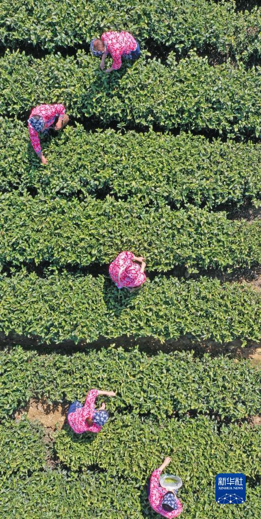 正值明前茶采摘高峰时期,为缓解因疫情造成的采茶工短缺压力,浙江省台州市仙居县上张乡组织党员、青年、志愿者组成的助农小分队,帮助农户采摘明前茶。