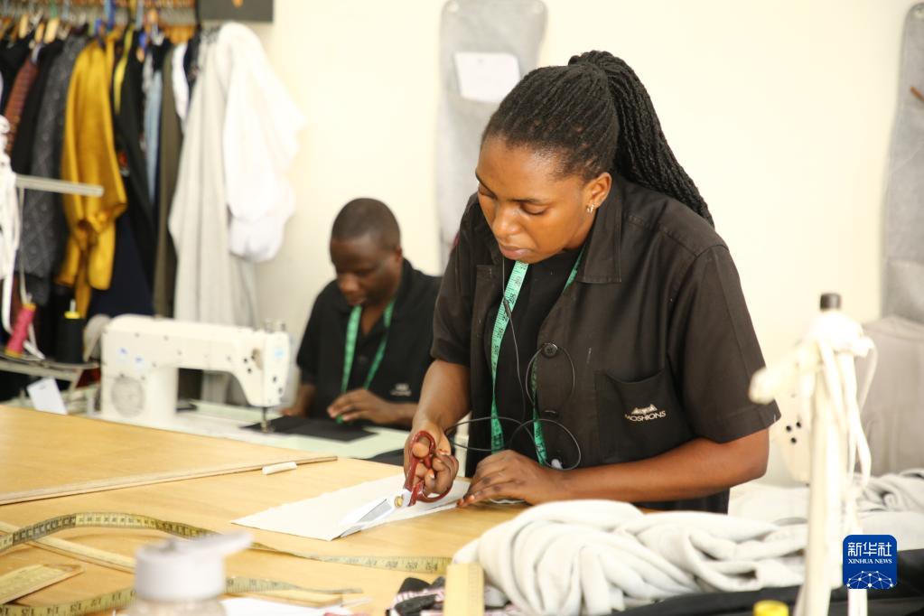 4月1日,在卢旺达首都基加利,工作人员在Moshions服装品牌店的工作室内制衣。新华社发(黄万晴摄)