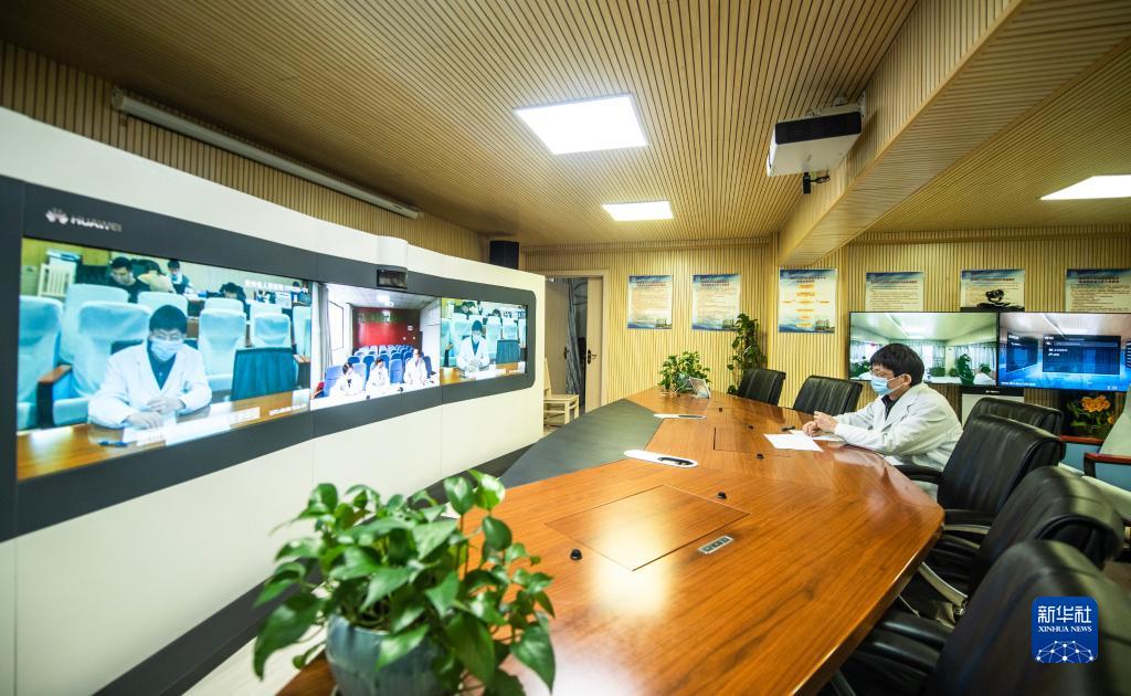 贵州省人民医院医师在和榕江县中医院医生进行远程医疗会诊(3月30日摄)。
