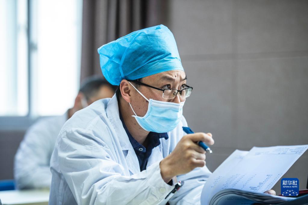 毕节市威宁彝族回族苗族自治县人民医院医生在远程医疗会诊中向贵州省人民医院专家请教(3月29日摄)。