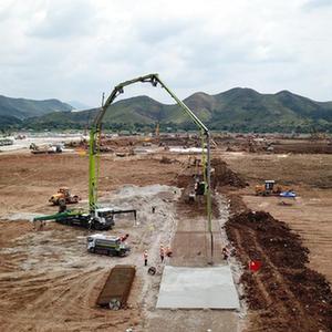 3月6日,中央援港应急医院开始大规模施工,这是当天拍摄的建设现场(无人机照片)。