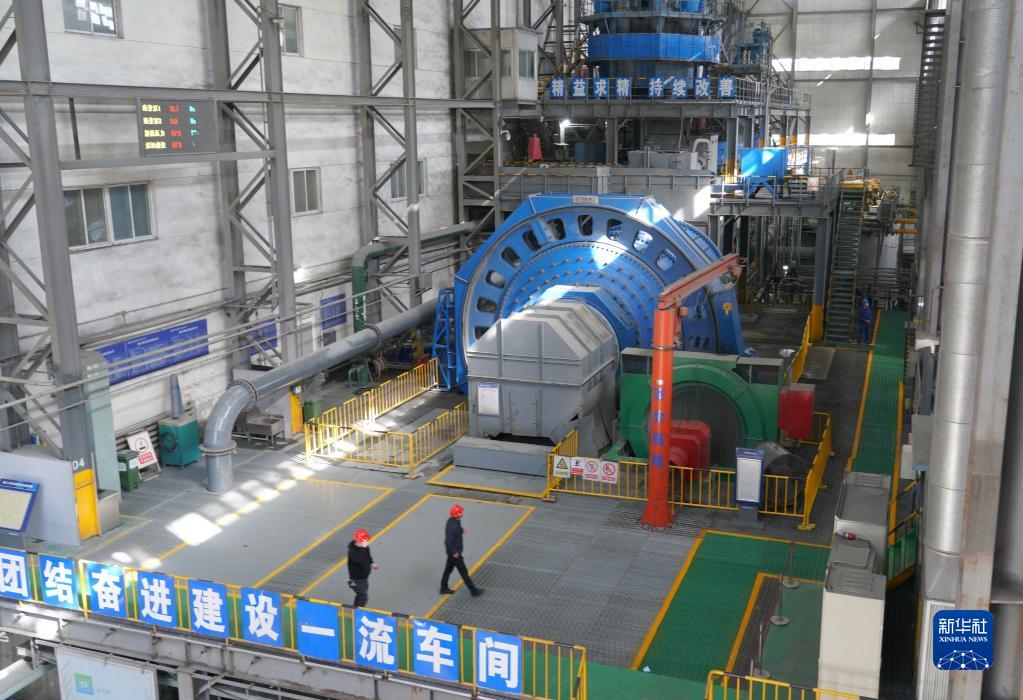 金堆城钼业集团有限公司百花岭选矿厂车间在进行磨矿作业(4月7日摄)。