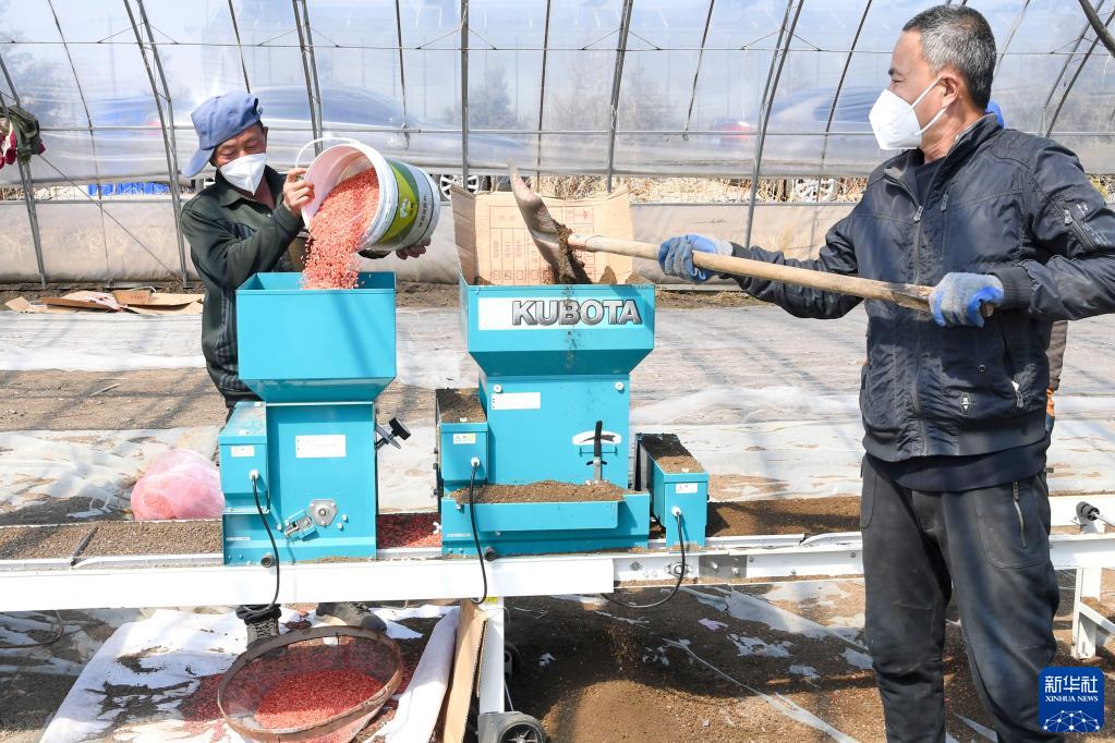 长春市九台区龙嘉街道红光村农民进行备春耕工作(4月7日摄)。