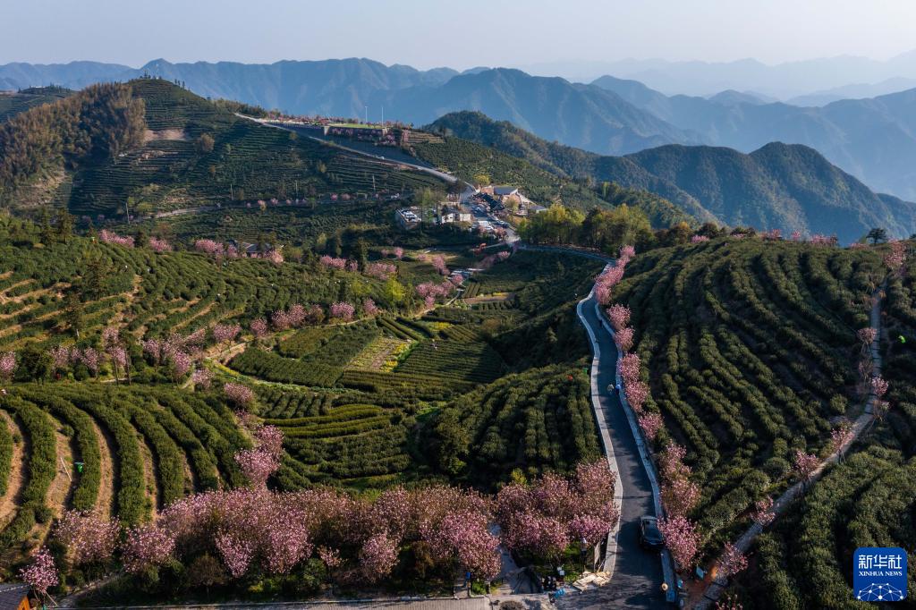 4月7日拍摄的里山镇安顶山的高山云雾茶地(无人机照片)。