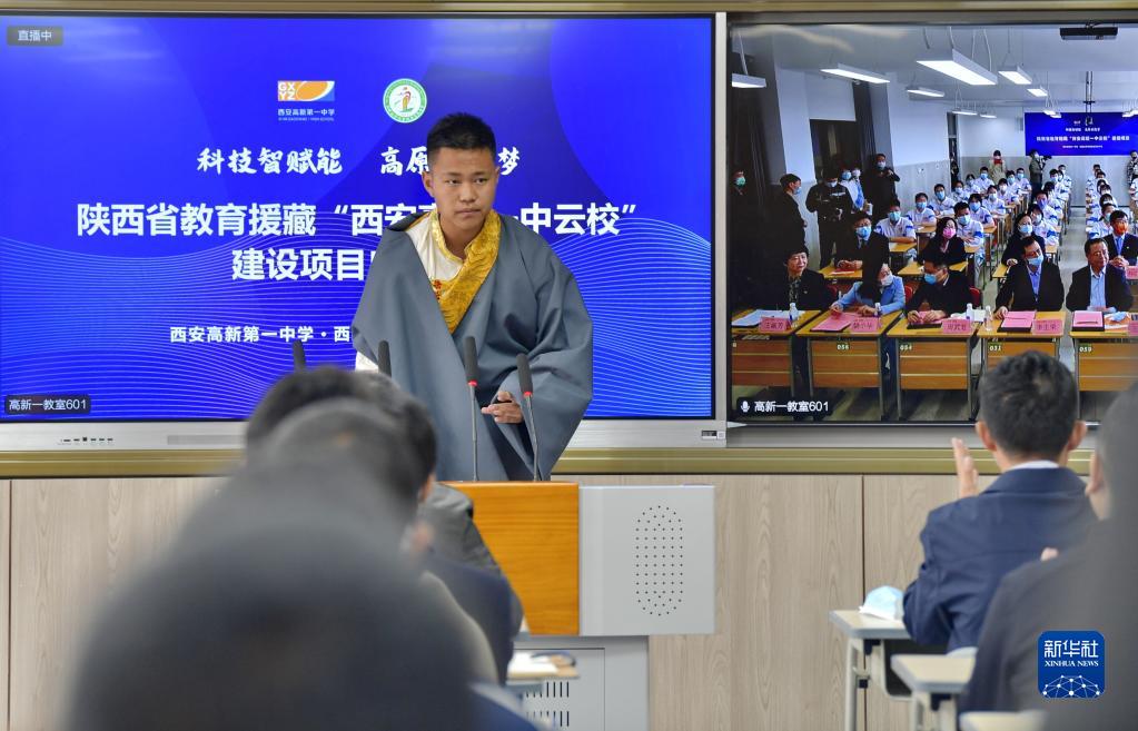 当日,陕西省教育援藏“云校”建设项目正式启动。陕西省西安高新第一中学和西藏拉萨阿里地区高级中学结成“对子”,借助5G网络开展教学教研互动,助力提升教育水平。