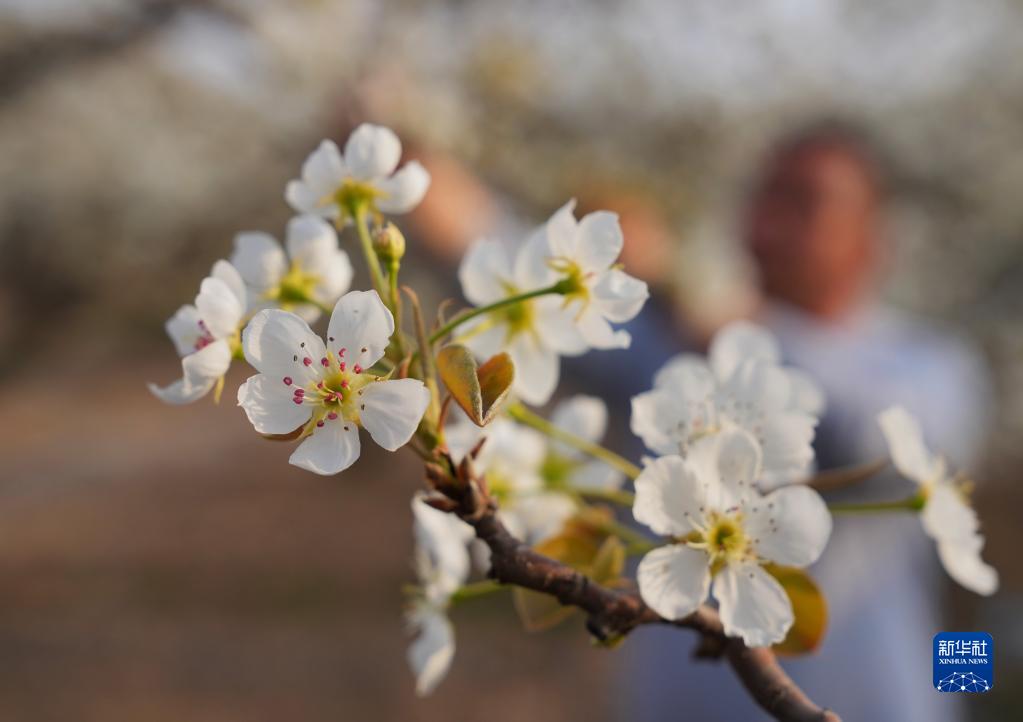 近日,河北省赵县的25万亩梨树陆续开花,当地果农抢抓农时,给梨树疏花授粉。