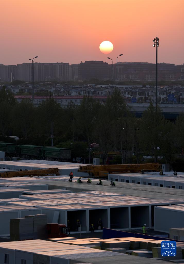 当日,记者从上海市新冠肺炎疫情防控新闻发布会上了解到,上海正加紧方舱医院建设,目前约3.8万张床位已交付投用。国家会展中心(上海)将成为目前上海最大的方舱医院,计划9日起分批交付,预计可提供5万张床位。新华社记者 金立旺 摄