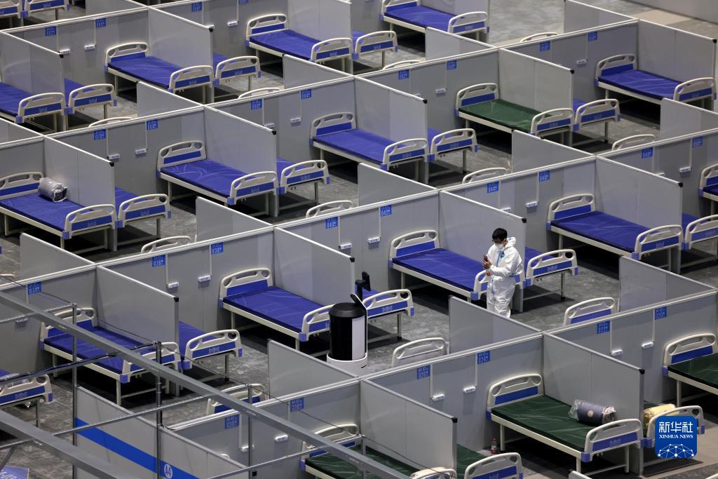 当日,记者从上海市新冠肺炎疫情防控新闻发布会上了解到,上海正加紧方舱医院建设,目前约3.8万张床位已交付投用。国家会展中心(上海)将成为目前上海最大的方舱医院,计划9日起分批交付,预计可提供5万张床位。新华社记者 金立旺 摄