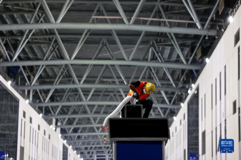 当日,记者从上海市新冠肺炎疫情防控新闻发布会上了解到,上海正加紧方舱医院建设,目前约3.8万张床位已交付投用。国家会展中心(上海)将成为目前上海最大的方舱医院,计划9日起分批交付,预计可提供5万张床位。新华社记者 金立旺 摄