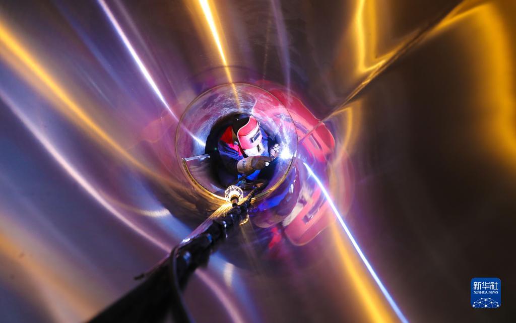4月7日,浙江省德清县钟管镇的一家智能装备企业车间里,工人在焊接加工“智能染色机”零部件。