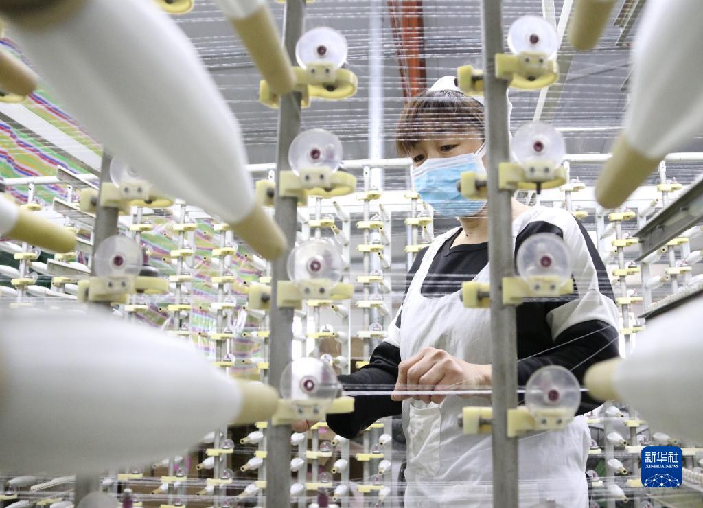 4月7日,在山东省菏泽市牡丹区高庄镇一家新型材料生产企业,工人在加工玻璃纤维。