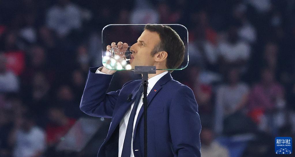 4月2日,法国总统马克龙在巴黎附近的拉德芳斯体育馆出席竞选集会。