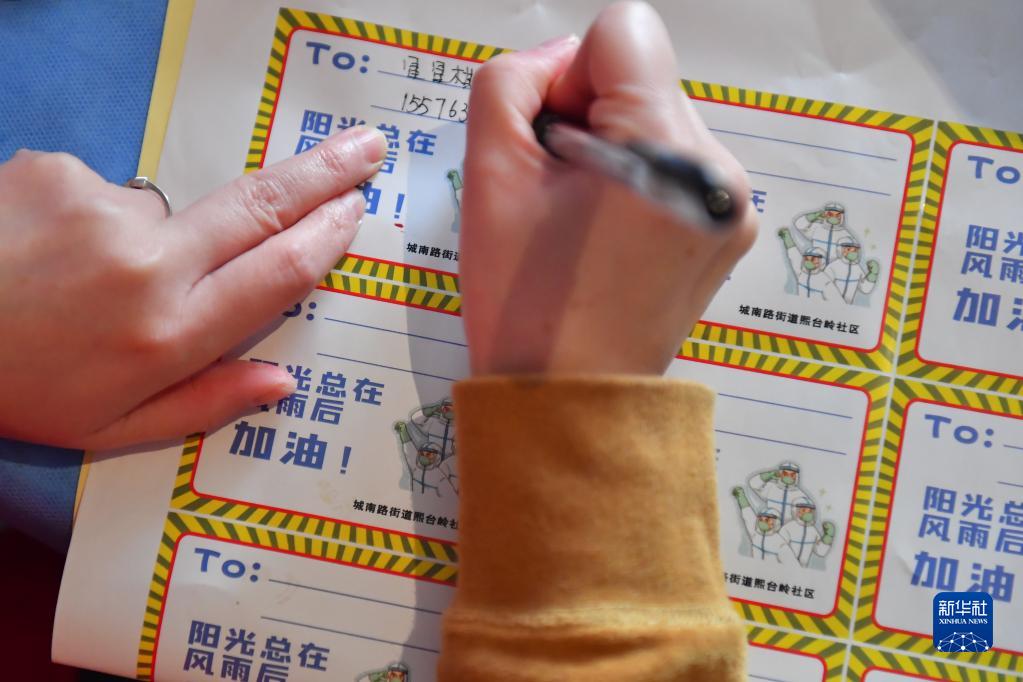 4月9日,在长沙市天心区城南路街道熙台岭社区的生活必需品集中投放点,志愿者登记需要生活物资的居民信息。