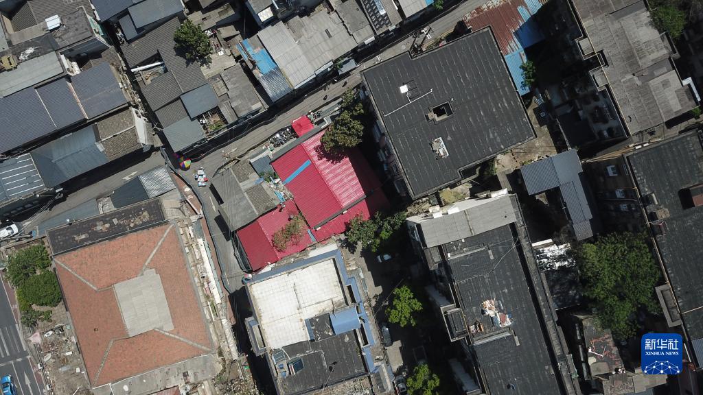 这是4月9日拍摄的长沙市天心区城南路街道熙台岭社区的管控区一角(无人机照片)。