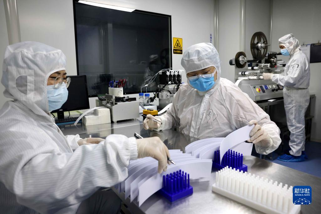 4月8日,必欧瀚生物技术(合肥)有限公司工人在抗原检测试剂盒生产车间内忙碌。