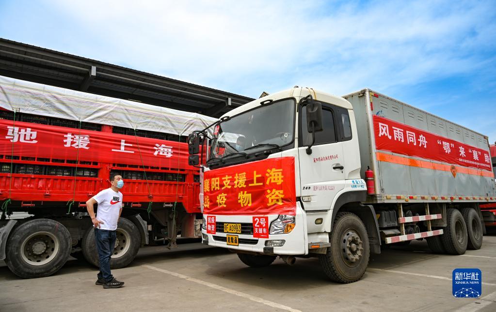 4月9日,装有蔬菜的卡车准备从襄阳出发。