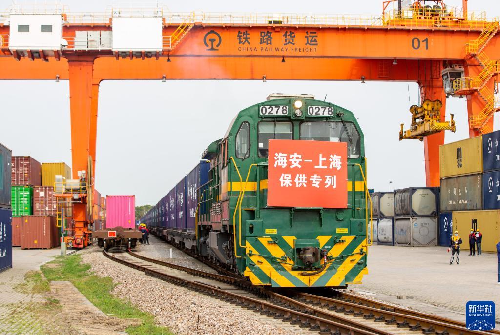 当日,满载粮油产品、防疫物资等的首趟“海安—上海保供专列”从江苏海安出发前往上海,助力上海抗击疫情。