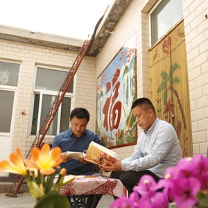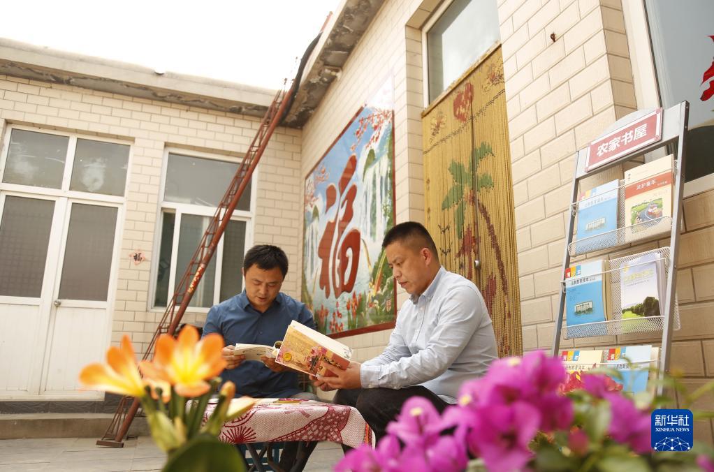 4月10日,邢台市襄都区东郭村镇新华村村民在“美丽庭院”农家书屋阅读书籍。