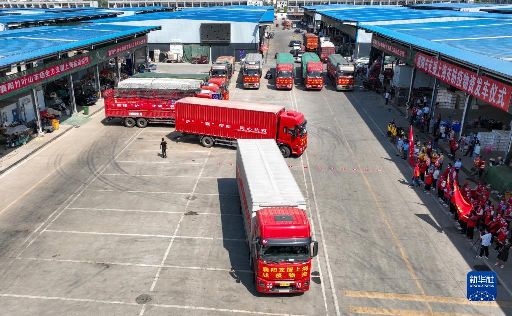 当日,湖北襄阳发出第二批爱心物资支援上海,这批物资包括蔬菜、方便食品、防护用品等。