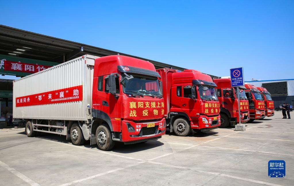 当日,湖北襄阳发出第二批爱心物资支援上海,这批物资包括蔬菜、方便食品、防护用品等。