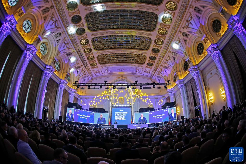 4月10日,在罗马尼亚首都布加勒斯特,罗马尼亚总理丘克在国家自由党特别代表大会上发表讲话。