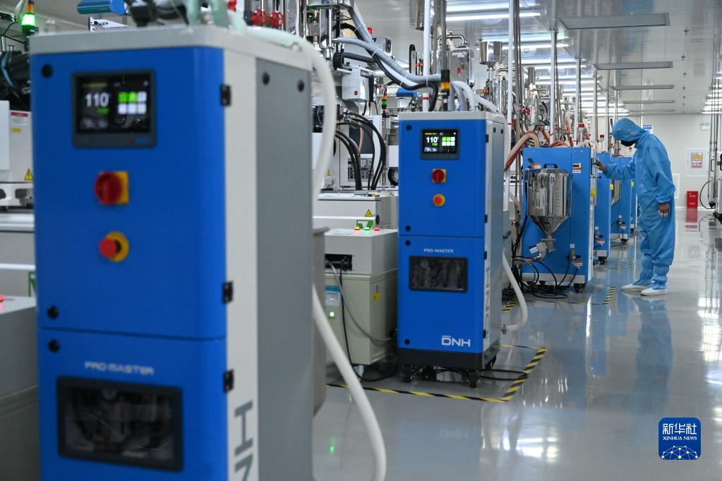 4月12日,在福建泉州石狮市的一家光学镜头制造企业,技术工人在车间里忙碌。