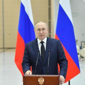 4月12日,俄罗斯总统普京在俄远东地区东方航天发射场发表讲话。