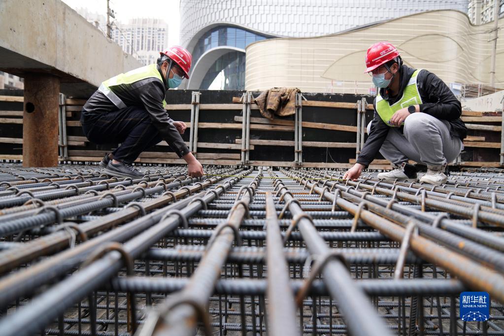 4月12日,工作人员在中交二公局哈尔滨市轨道交通3号线二期工程施工现场作业。
