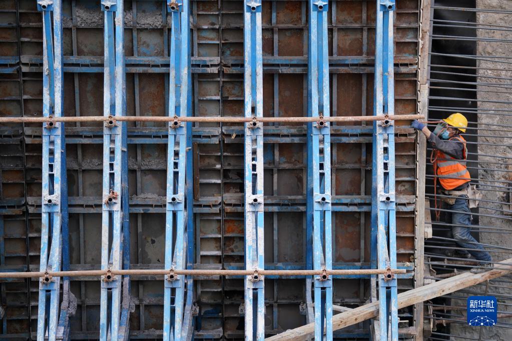 4月12日,工作人员在中交二公局哈尔滨市轨道交通3号线二期工程施工现场作业。