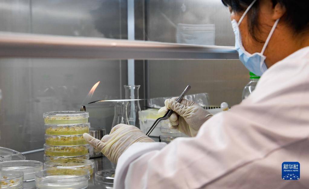 科研人员在崖州湾种子实验室工作(2021年11月24日摄)。