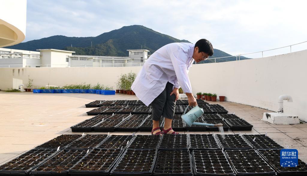 中国科学院遗传与发育生物学研究所研究员高彩霞在崖州湾种子实验室进行科研工作(2021年11月24日摄)。