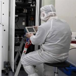 4月13日,工人在合肥哈工龙延智能装备有限公司对智能机器人进行功能测试。