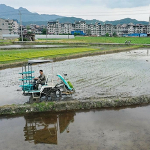 4月13日,政和县东平农机专业合作社社员在东平村进行插秧作业(无人机照片)。