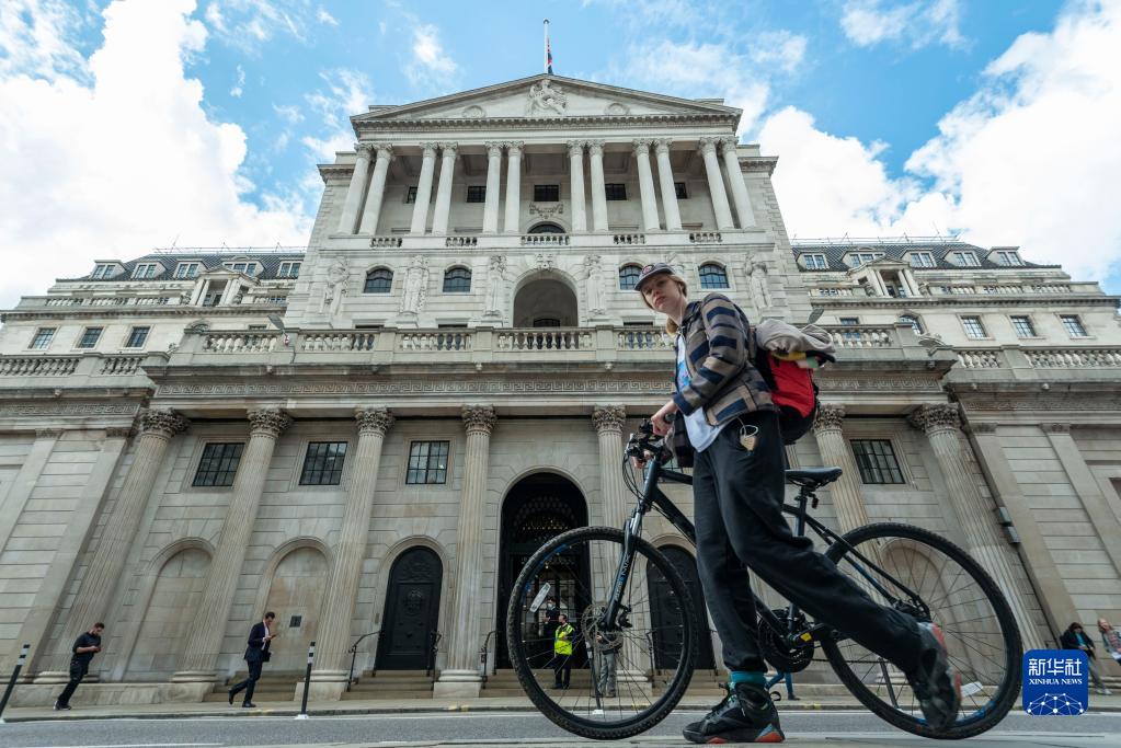 4月13日,在英国伦敦,一名女子经过英格兰银行。