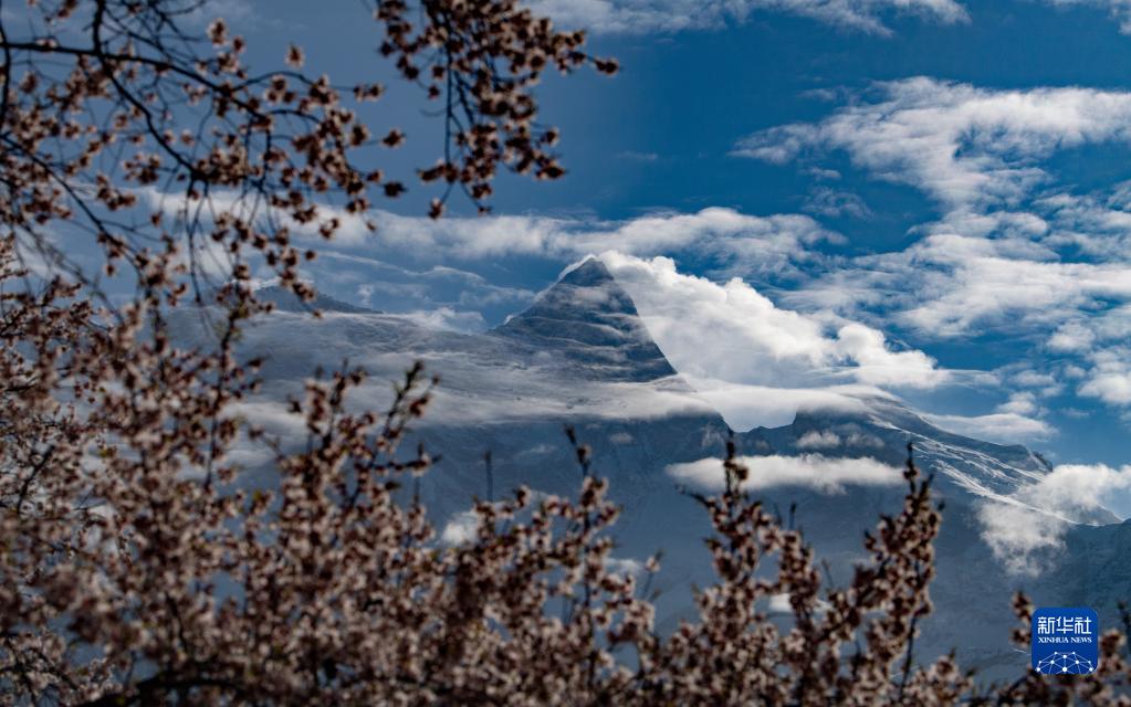 桃花掩映下的南迦巴瓦峰(4月13日摄)。