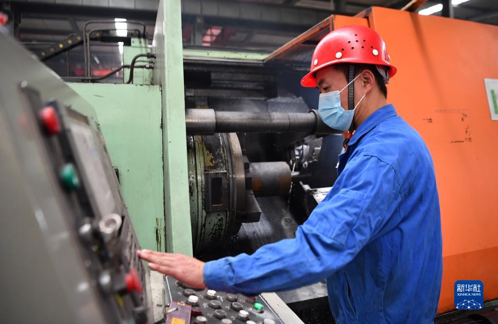 4月13日,工作人员在延安嘉盛石油机械有限责任公司生产车间工作。