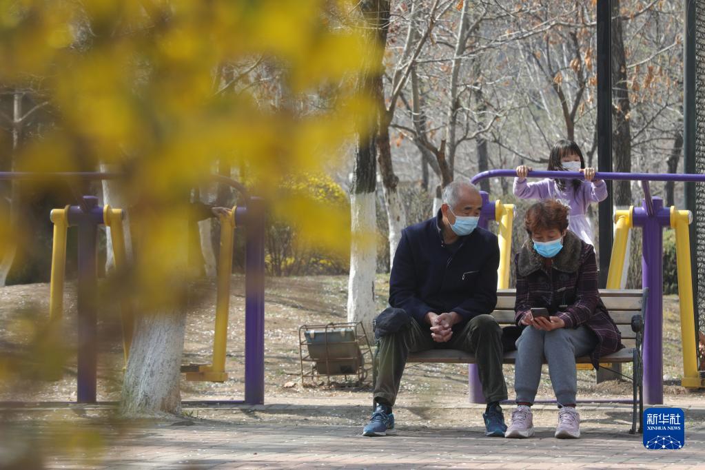 4月13日,市民在沈阳市和平区一公园内休闲。