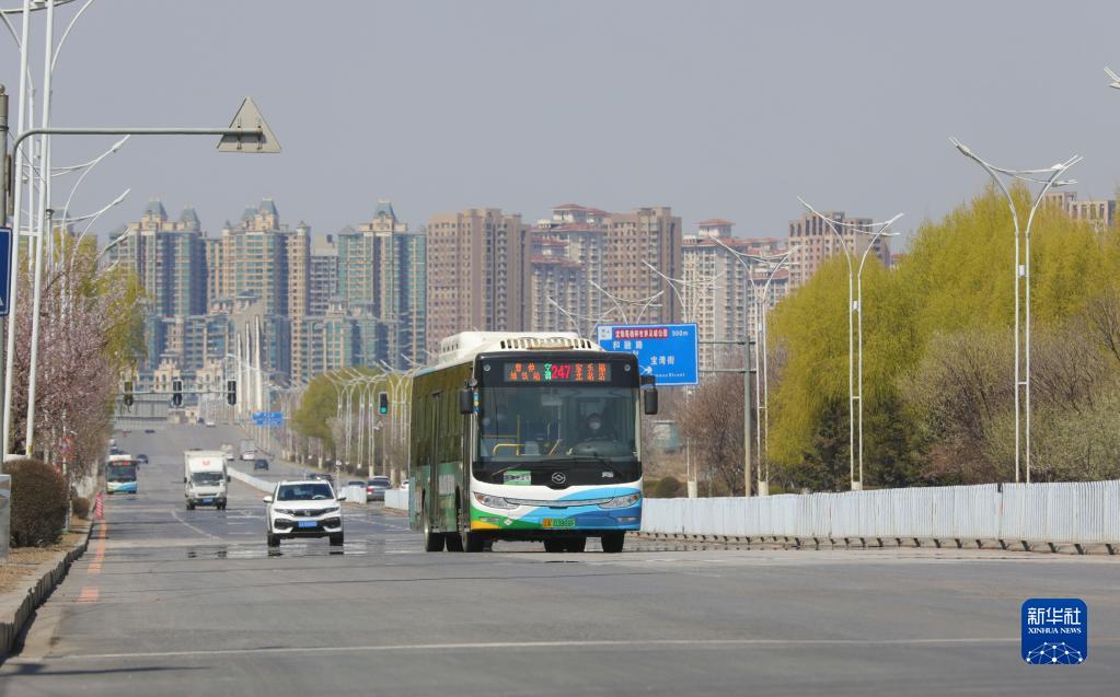 4月13日,在沈阳市和平区,恢复运行的公交车在道路上行驶。