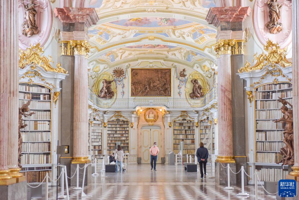 这是4月13日拍摄的奥地利阿德蒙特修道院图书馆大厅。