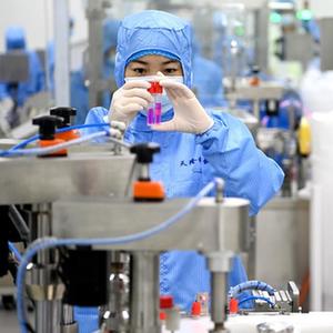 4月14日,西安天隆科技样本保存液生产线的工作人员在进行包装作业。